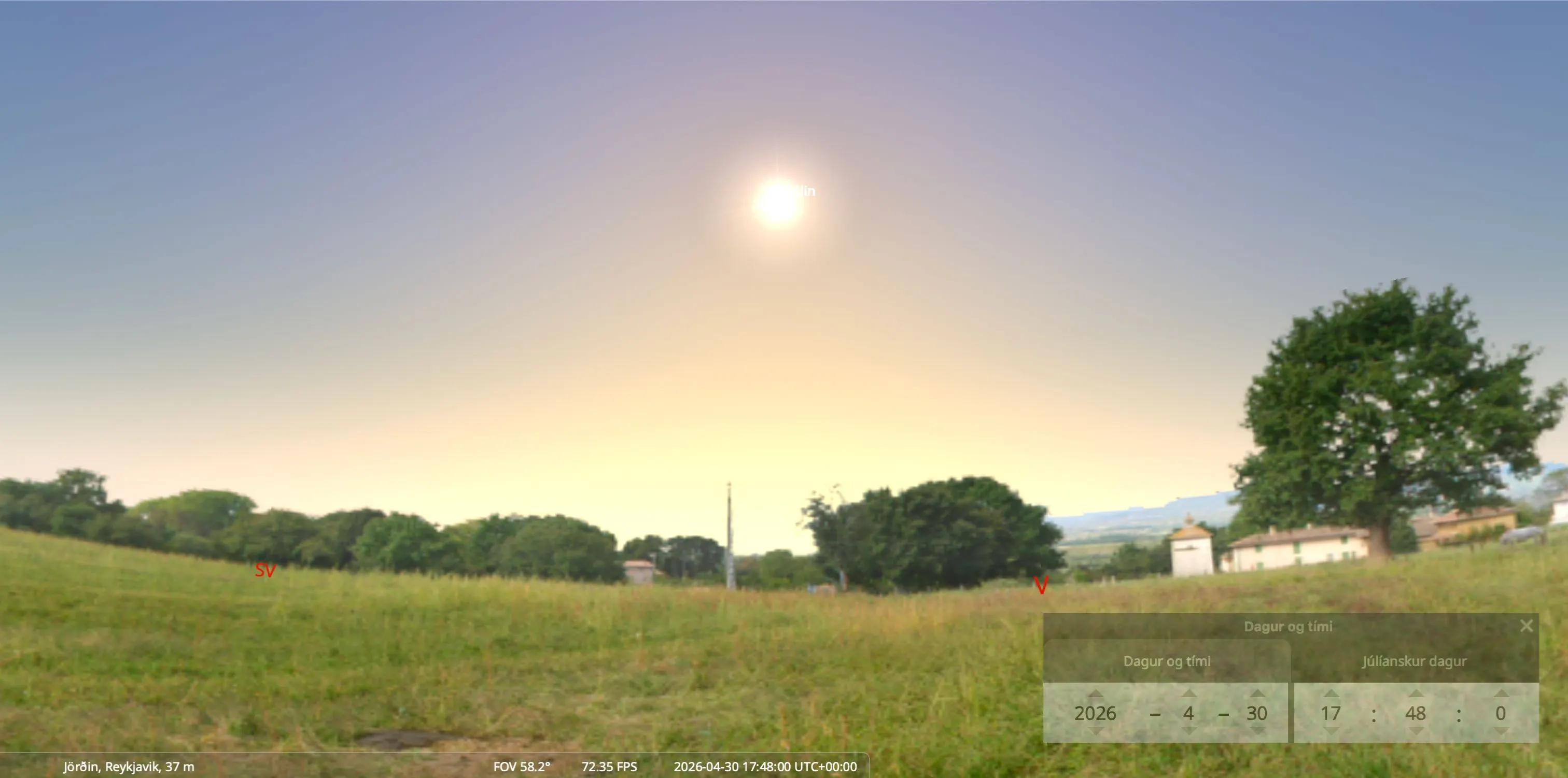 Með því að horfa í átt til sólar síðdegis 30. apríl 2026 geturðu séð nákvæmlega hvar á himni almyrkvinn 12. ágúst næstkomandi verður.
